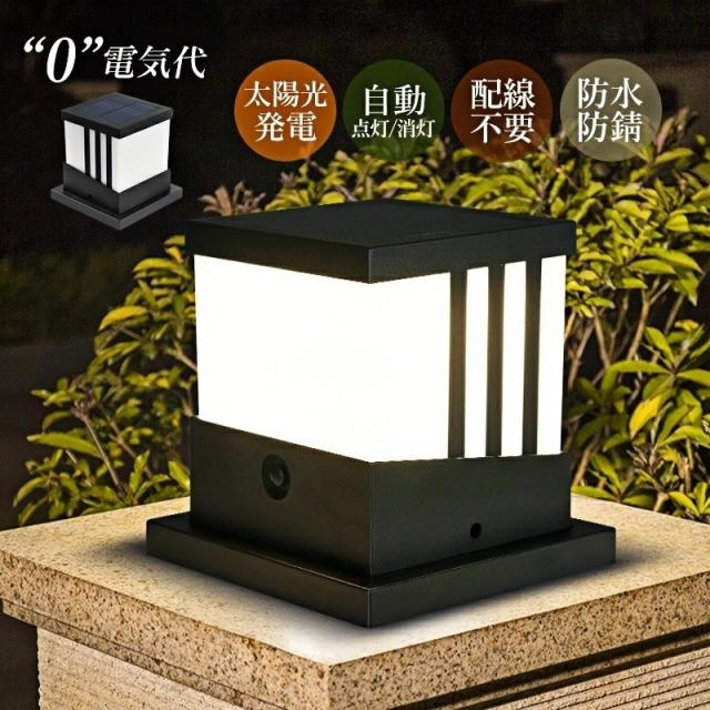 ソーラーライト LED 明暗センサー 自動点灯 門柱灯 ソーラー充電式 屋外照明 北欧 おしゃれ 玄関外灯 和風 防雨 表札灯 エントランス照明 柱上付け 配線不要
