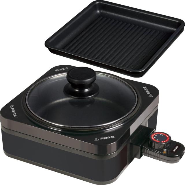 山善 ホットプレート グリル鍋 一人暮らし プレート2種 (波型プレート/鍋プレート) 着脱式プレート 温度調節機能付き ブラック YHC-W60