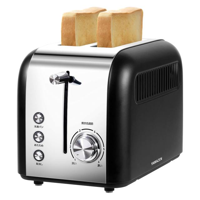 山善 ポップアップトースター ステンレス 焼色調節6段階 2枚焼き 冷凍パン あたため 簡単操作 シルバーブラック YUC-S851(B)