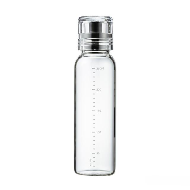 【商品詳細】本体サイズ:幅5.5×奥行5.5×高さ20.3・口径3.7cm、本体重量:約237g、実用容量:250mL、本体材質:本体/耐熱ガラス・フタ/PCT樹脂・注ぎ口/シリ コーンゴム
