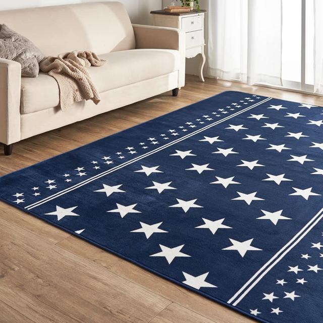 アイリスプラザ フランネルラグ スターブルー 200×250? 滑り止め付き ラグ 洗える ラグカーペット マット カーペット対応 防ダニ フラ