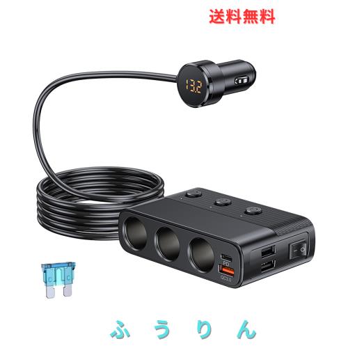 Timloon シガーソケット3連 急速充電器USBポート4連 シガーソケット分路器付き LED電圧表示 PD/QC3.0充電器 独立スイッチ搭載 127W 12/24