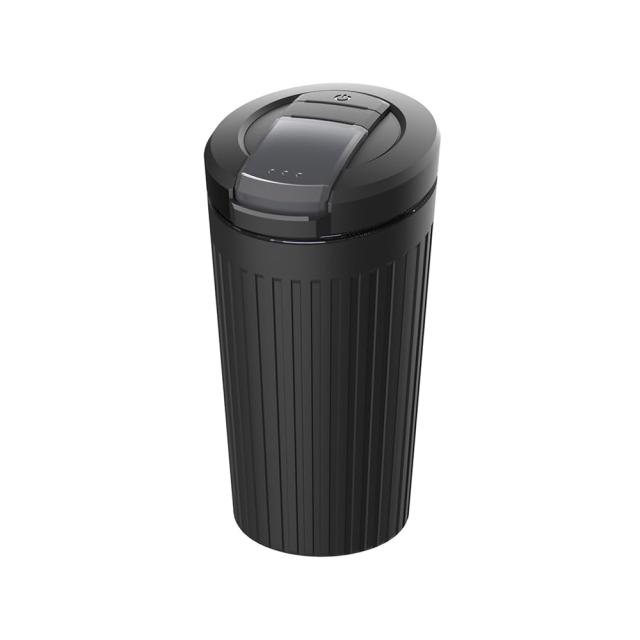 加熱式タバコ専用の大容量吸殻入れ、ホワイトLED照明付き。フタの開き方2通り、プッシュ式/大きく開く全開式。溜まった吸殻が見えるスモークのフタを採用、軟質ロングボトル。