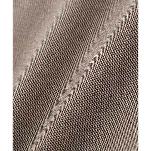 シャークスキン組織の、強撚のシャリ感としなやかな落ち感を併せ持つ上品な梳毛見え素材を使用しています。程よいストレッチも効いていて着用感も良いです。
