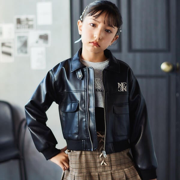 ネクシック(nexchic)/フェイクレザー&チェック柄ブルゾン(110~150cm)