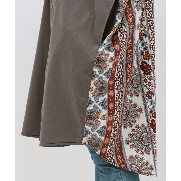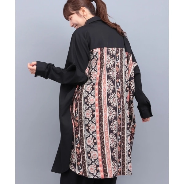 ゆったりとしたシャツワンピースに、オリジナル柄の切り替えをプラスしたドッキングデザイン。
