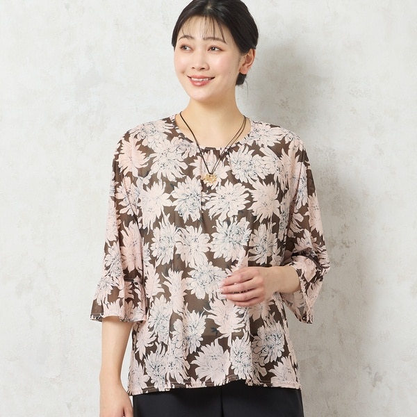 【洗える・日本製】花柄チュールブラウス