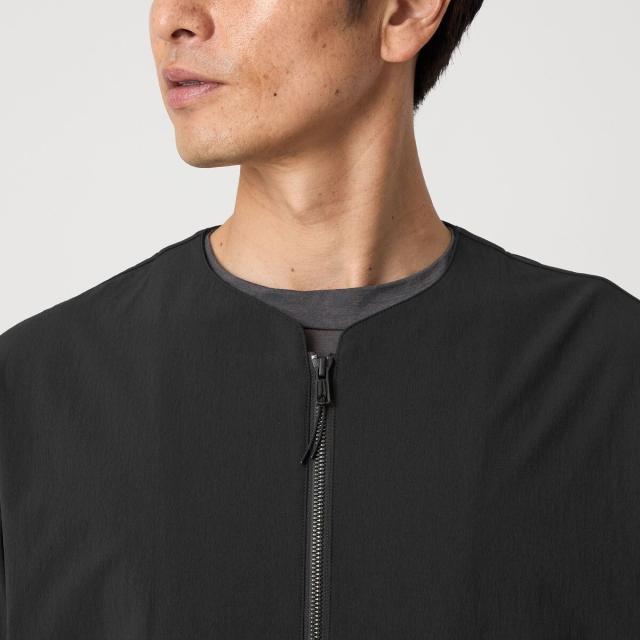 衿の無いデザインでアウターとしてはもちろん、アウターのインナーとしても使い勝手が良く長いシーズンご着用いただけるデザインが特徴です。