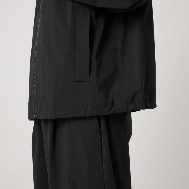 裾に配したスピンドルとストッパーの調整でシルエット変化を付けてのご着用が可能。