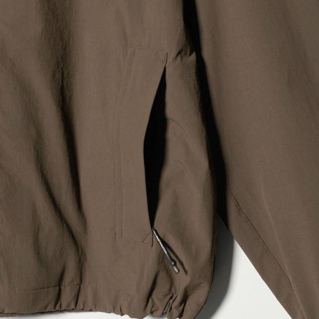 ハリ感がありながらも快適に過ごせる伸縮性に加え、撥水性もあり雨の日もおすすめのアイテムです。