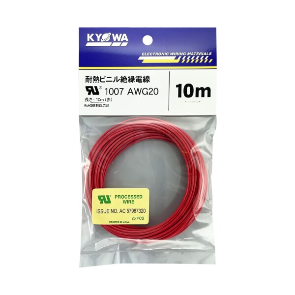 | 商品名 | 協和ハーモネット UL1007 AWG20 耐熱ビニル絶縁電線 10m 赤 |