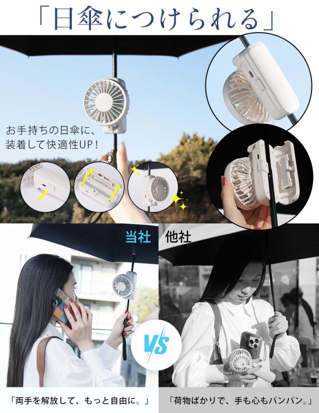 日傘ハンディファン クリップファン 扇風機 携帯扇風機 軽量 ハンディファン 首掛け扇風機 ミニ扇風機