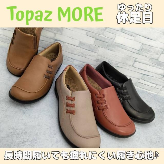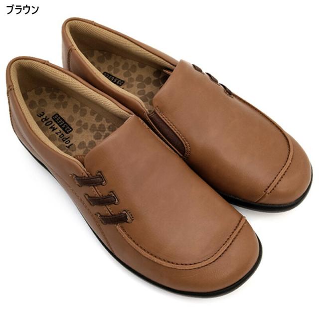 4E 幅広 ワイド トパーズ レディース スリッポン 靴 シューズ カジュアル おしゃれ コンフォート 軽量 防滑 サイドゴア 外反母趾 歩きやすい ミセス ブラック 黒 ブラウン ピンク 茶色 送料無料 TOPAZ 1414
