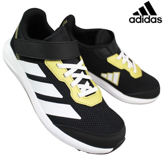 アディダス スニーカー ファイト EL K JQ2555 ブラック/ホワイト/ゴールド 19cm〜25cm キッズ ジュニア ローカットスニーカー ランニングシューズ スポーツシューズ 運動靴 子供靴 通学靴 マジックテープ アディダスJQ2555