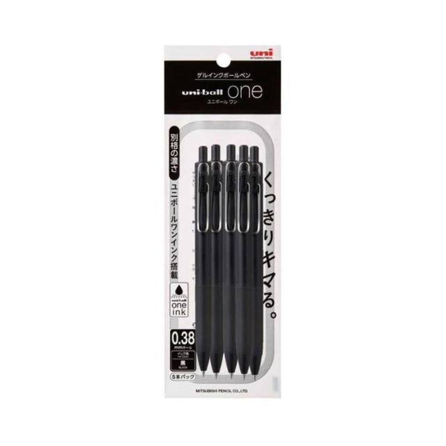 三菱鉛筆 ユニボールワン 0.38mm 黒 5本パック UMNS38PBK.24 ゲルインクボールペン uni-ball one