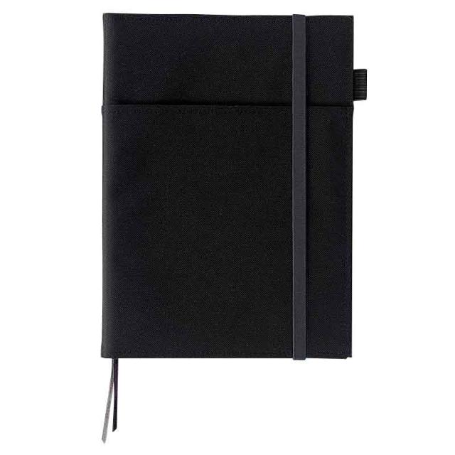 ●従来のカバーに比べ、ノートの表紙を固定する内ポケットが深く設計してあるので、表紙片側だけでしっかりノートを固定。2冊のノートがしっかり収容できます。●最大収容幅が広く、リングノートをはじめ、厚手のノートやメモパッドも収容可能です。●右ポケットにリングノートを収容すると、リングノートの特長を生かしたまま、コンパクトに使えます。●表紙ポケットには筆記具や付箋など、ノートと一緒に利用する頻度の高い小物がまとめて収容できます。また内ポケットには資料や名刺が挟み込めます。●表紙にははっ水加工を施した、耐久性のある素材を採用しました。●しおりひも(2本)付きW206XD278XH13(mm)