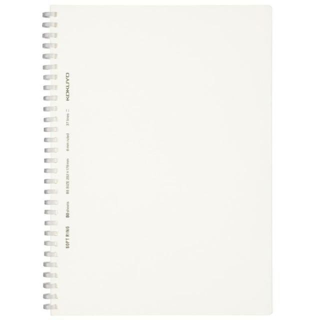 ●コクヨ独自開発の“新感覚やわらかリング”を採用したリングノートです。●平らに開くので書き込みやすい、平らに折り返せるので狭い場所でも心地よく使える、といったリングノートのよさはそのままに、書くときリングに手が当たっても気にせず端まで美しく書ける、これからの新定番ノートです。●リング形状が“Dの字型”になっているので、リング幅がコンパクトでリングノート特有のかさばり感がありません。●ノートの枚数はたっぷり書ける80枚です。●必要なページだけをきれいに切り離せる、マイクロミシン目入りのカットオフタイプです。●気軽に使いやすい中横罫(6mm)を採用しました。●ビジネスシーンに馴染むマットなPP表紙のデザインです。186×252×10mm●サイズ:6号(セミB5)●中紙寸法(タテ・ヨコ):252・179mm●罫内容:中横罫●行数:37行●枚数:80枚●中紙/上質紙●表紙/透明PP●リング/オレフィン系樹脂●表紙色・・・透明