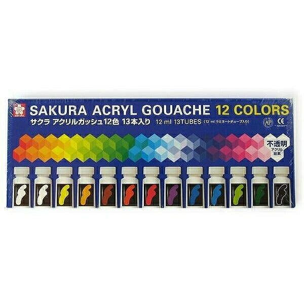 サクラクレパス アクリルガッシュ 12色 (13本入) ラミネートチューブ AGW13 アクリル絵の具 セット
