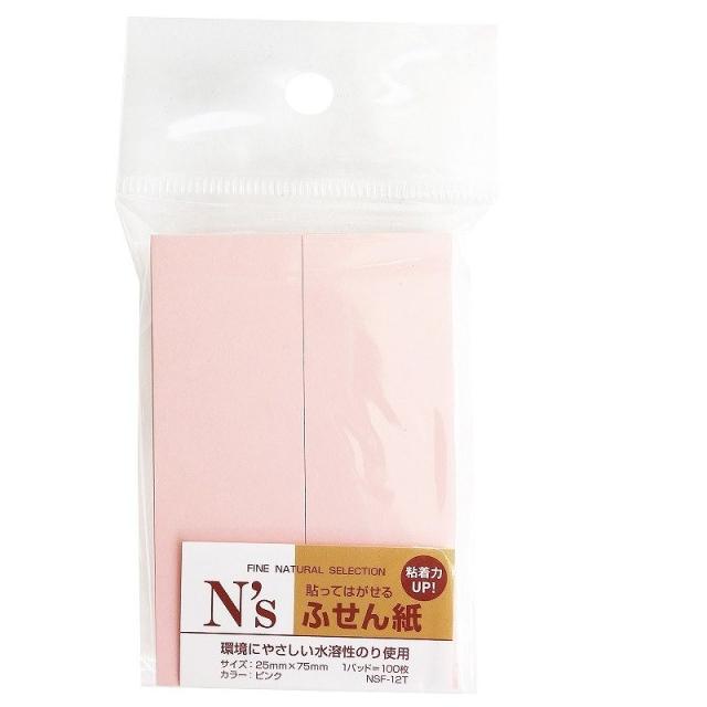 日本製 貼ってはがせるN'sふせん紙 環境にやさしい天然系のり成分使用25mm×75mm 1冊:100枚×2パッド25mm×75mm 1冊:100枚×2パッド