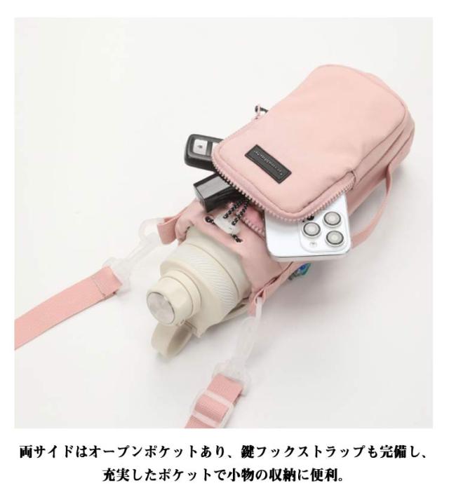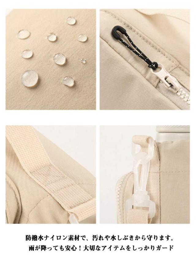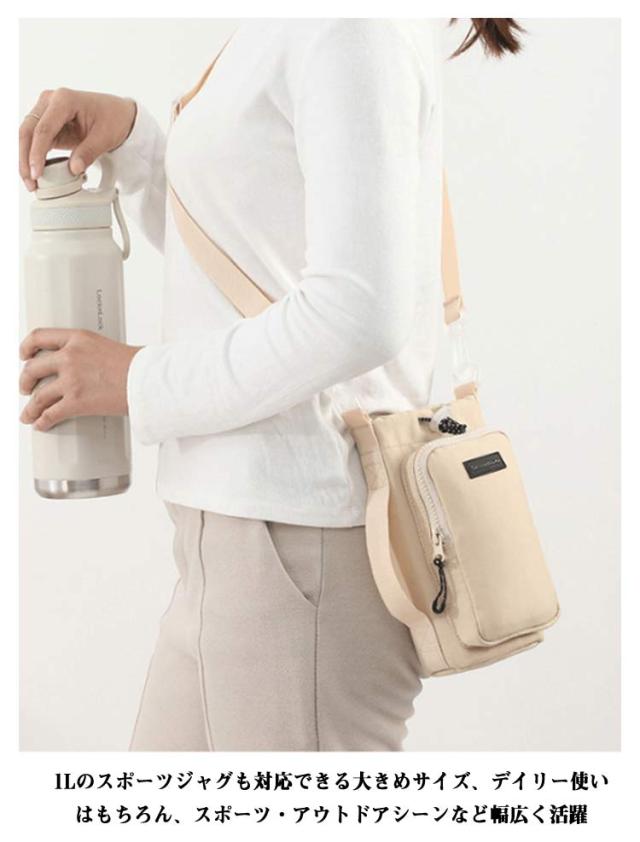 | ショルダー付き水筒ホルダー。 防水・撥水加工を施したナイロン素材で作られたボトルケース。 防撥水ナイロン素材で、汚れや水しぶきから守ります。雨が降っても安心!大切なアイテムをしっかりガード スマートフォン、カードやワイヤレスイヤホンなど小物を入れるのに安心のファスナーポケット付き。 両サイドはオープンポケットあり、鍵フックストラップも完備し、充実したポケットで小物の収納に便利。 ハンドストラップとショルダーストラップ付きの2WAY仕様、両方とも取り外し可能で、シーンに合わせて利用できます。 1Lのスポーツジャグも対応できる大きめサイズ、デイリー使いはもちろん、スポーツ・アウトドアシーンなど幅広く活躍 | |