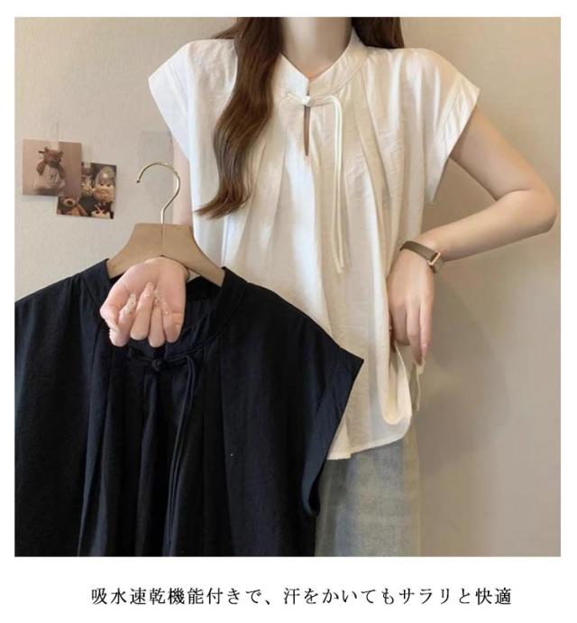 ブラウス 着痩せ レディース チャイナボタン 薄手 半袖ブラウス チャイナ風 トップス 半袖 トップス 夏 ブラウス 中華 中国風 Tシャツ 体型カバー カジュアル 無地 お洒落 ナチュラ 大人 かわいい おしゃれ