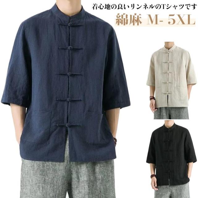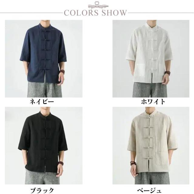 メンズ チャイナボタン チャイナシャツ スタンドカラーシャツ カジュアル チャイナ風 半袖 普段着 カジュアルシャツ カンフーシャツ トップス 半袖シャツ 漢服 父の日 ダンス 唐装 チャイナシャツ 綿麻 部屋着 中華風 中華服 演出服 男性 無地 春物 夏物