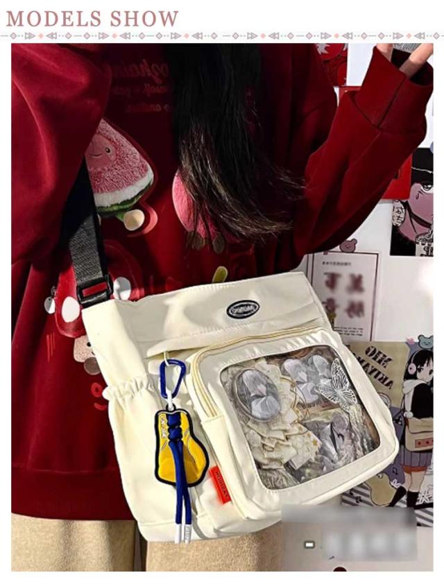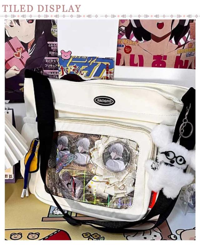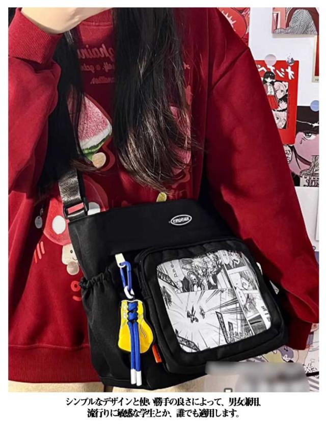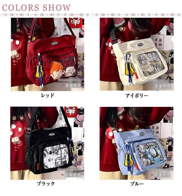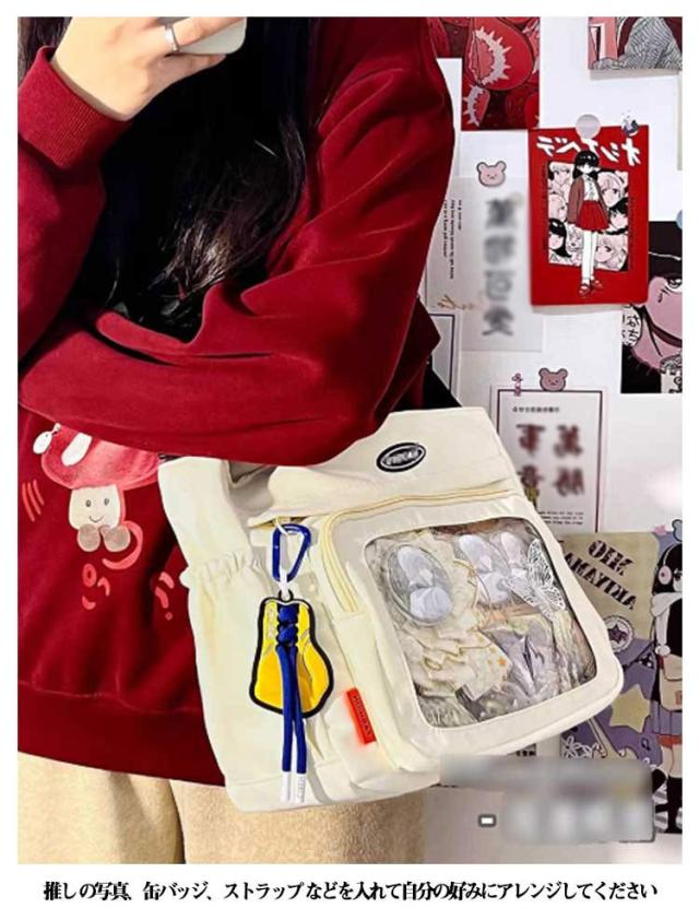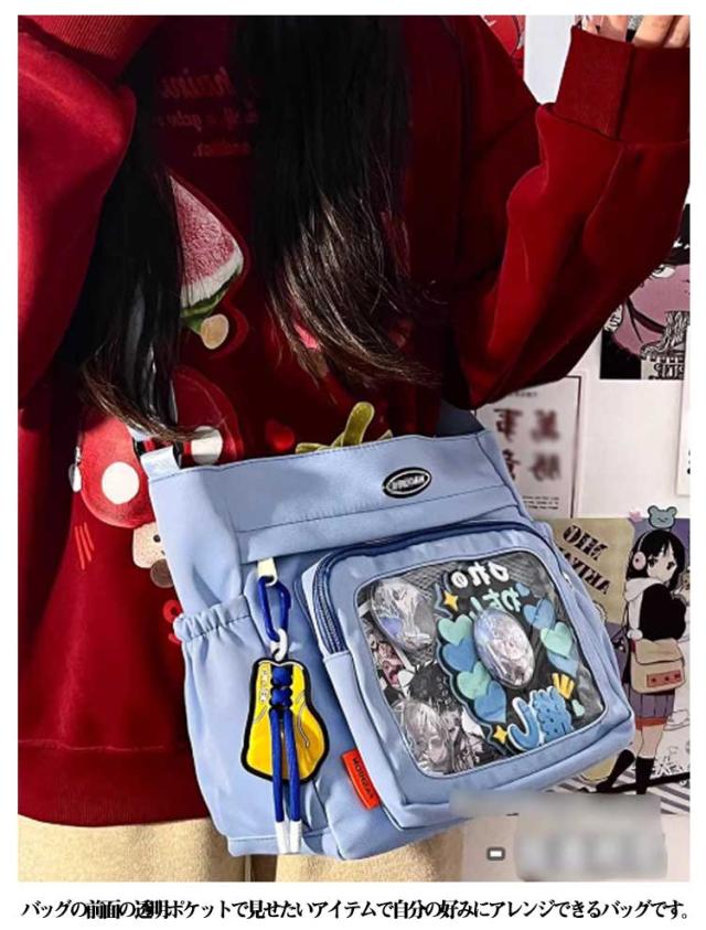 | ショルダータイプで小さめサイズの痛バッグ です! 推し の写真、缶バッジ、ストラップ などを入れて自分の好みにアレンジしてください シンプルなデザインと使い勝手の良さによって、男女兼用、流行りに敏感な学生とか、誰でも適用します。 バッグの前面の透明ポケットで見せたいアイテムで自分の好みにアレンジできるバッグです。 | |