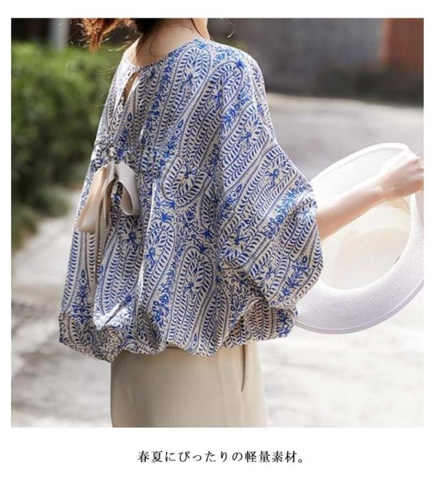 半袖 シャツ ブラウス 大人 春 レディース 花柄 半袖シャツ ドルマンスリーブ プルオーバー バックリボン シャツ 夏 薄手 ゆったり ナチュラル シャツ 可愛い おしゃれ エレガント カジュアル 通勤 デート