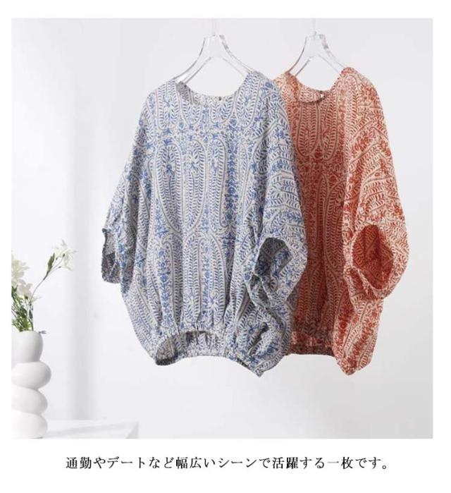 | 花柄シャツブラウス ドルマンスリーブ・バックリボン 2色展開・5サイズ! 大人可愛い花柄デザインのレディースブラウス。 春夏にぴったりの軽量素材。 バットスリーブとバックリボンが女性らしさを演出し、ゆったりシルエットで体型カバーにも最適。 通勤やデートなど幅広いシーンで活躍する一枚です。 30代・40代・50代の方にもおすすめ。 | |