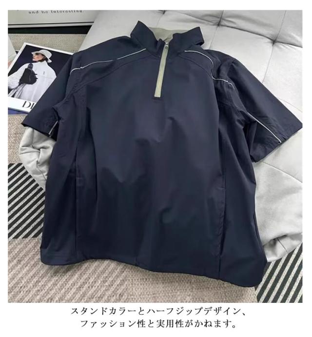 ポケット付き tシャツ アウトドア メンズ カジュアル ハーフジップ ゴルフウェア スタンドカラー トップス 薄手 普段着 Tシャツ 半袖 半袖 釣り 登山 夏用 夏 サイクリング テニス ダンス 男女兼用
