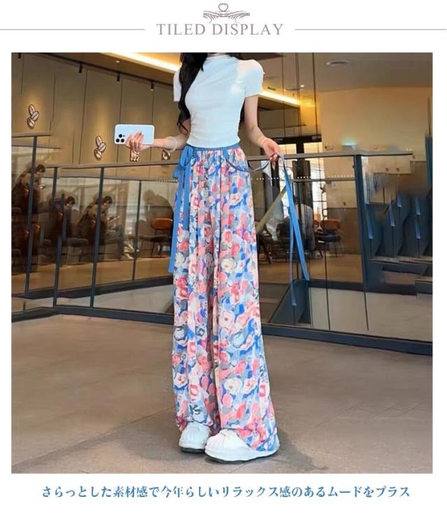 ワイドパンツ ゆったり パンツ レディース 涼しい レディース 柄パンツ 夏 パンツ リゾート ロングパンツ 柄 リラックスパンツ ストレッチパンツ ワイドパンツ パンツ きれいめ イージーパンツ ストレッチ オシャレ ハイウエストパンツ