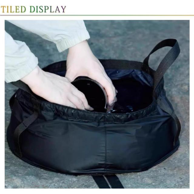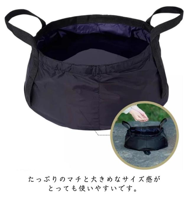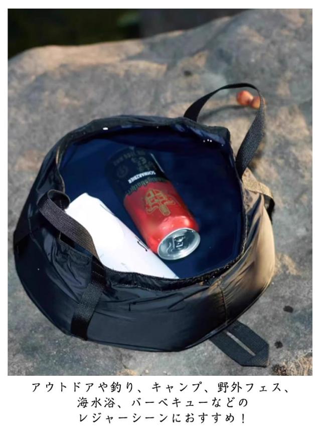 | 大容量の折りたたみ式バケツです。 水用としでなく、簡易のキャンプ道具入れとしても使えます。 アウトドアや釣り、キャンプ、野外フェス、海水浴、バーベキューなどのレジャーシーンにおすすめ! 使用しないときは折りたたみ、コンパクトに収納できます。 たっぷりのマチと大きめなサイズ感がとっても使いやすいです。 | |