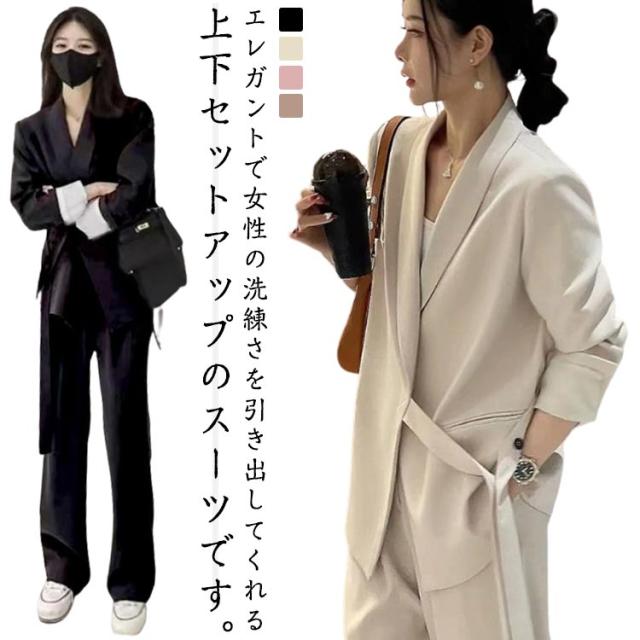 ビジネススーツ パンツスーツ ロングパンツ ジャケット 長ズボン 入学式 フォーマル 長袖 トップス 女性 レディース パンツスーツ 春夏秋冬 卒業式 通勤 セレモニー 無地