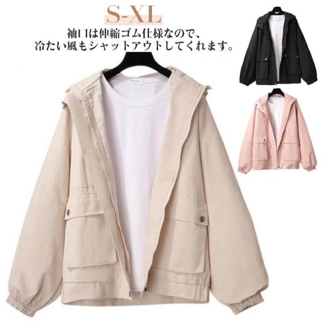 ジャケット マウンテンパーカー ジップパーカー アウター マウンテンパーカー 春秋 コート 長袖 レディース フード付き フライトジャケット 体型カバー 通勤 オシャレ