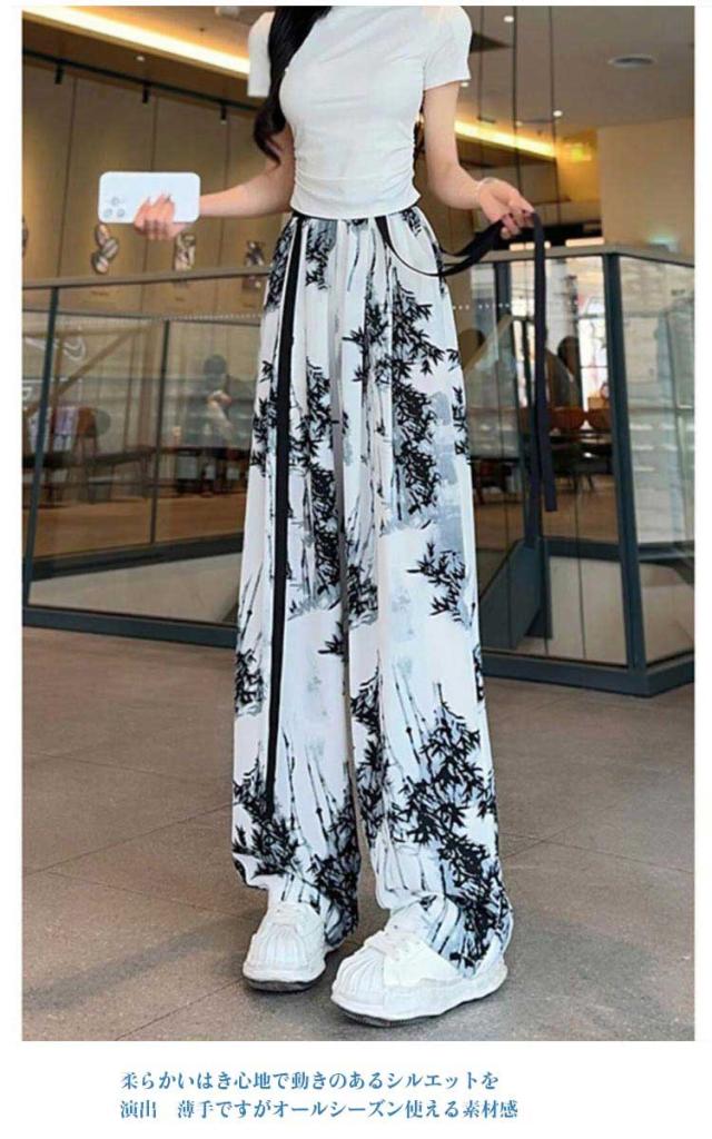 夏 ワイドパンツ 柄 ワイドパンツ ゆったり レディース レディース パンツ ウエストゴム 涼しい ロングパンツ ストレッチ リラックスパンツ ストレッチパンツ リゾート パンツ きれいめ イージーパンツ 柄パンツ オシャレ ハイウエストパンツ