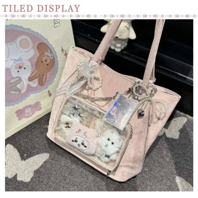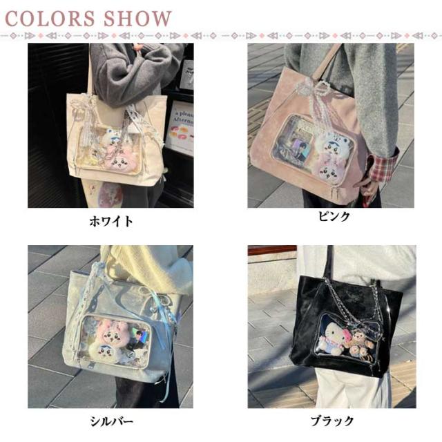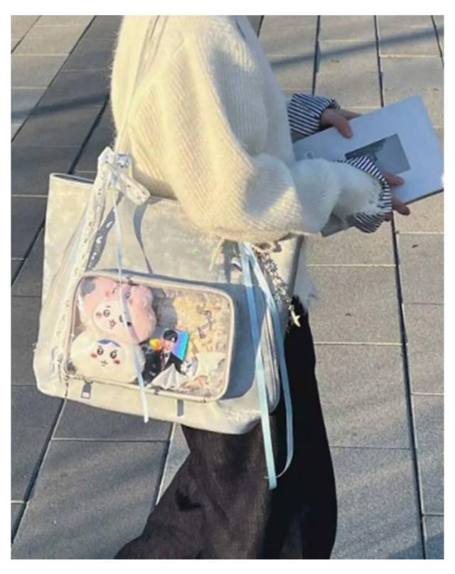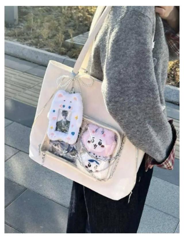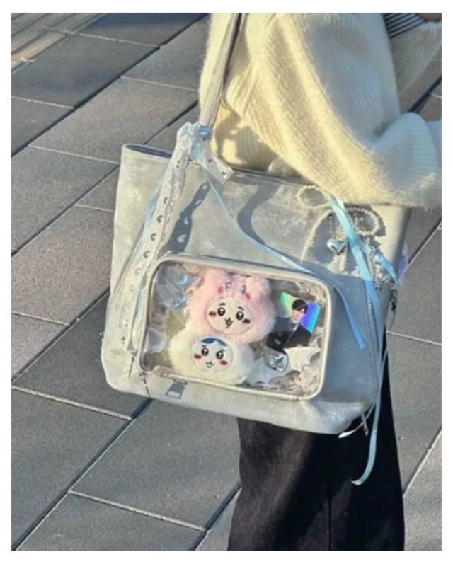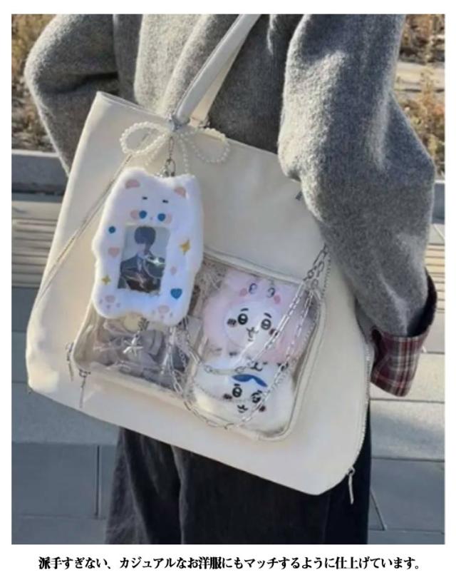 | 自分のコレクションを持ち歩けるバッグです。 バッグの透明ポケットで見せたいアイテムで自分の好みにアレンジできます。 リュックと肩掛けの2WAYでお使いいただけます。 好きな芸能人やアニメキャラの写真、缶バッジ、ストラップ、ぬいぐるみ、萌グッズなど入れて一目瞭然です。 派手すぎない、カジュアルなお洋服にもマッチするように仕上げています。 | |