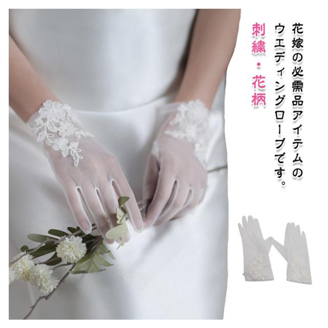 グローブ ブライダルグローブ ウェディンググローブ グローブ 花柄 披露宴 グローブ ショートグローブ ショート ウエディング 花嫁ドレス用 刺繍 レース かわいい オーガンジー手袋 パーティー ウェディンググローブ ウエディング 結婚式 ドレス ブライダル グローブ