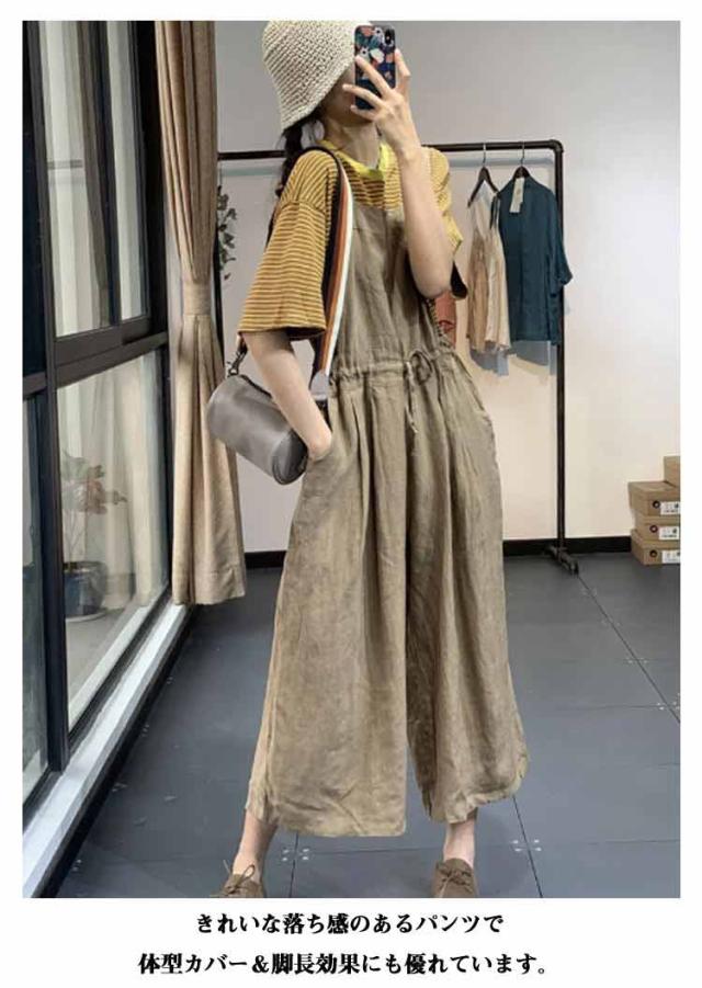 オールインワン リネン パンツ サロペット 綿 ワイドパンツ 幅広 ストレート 大きいサイズ サロペット サロペットパンツ ゆったり ロングパンツ オーバーオール ガウチョパンツ シルエット レディース 可愛い 薄手 ボトムス カジュアル 通勤 大人