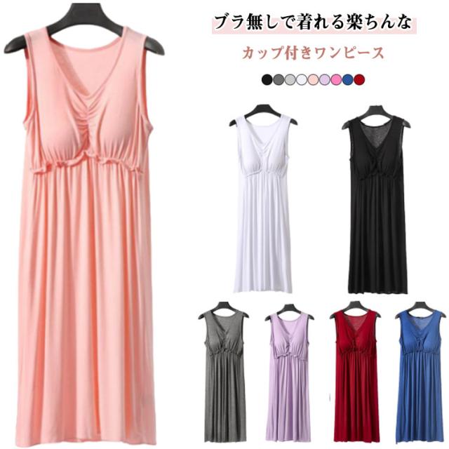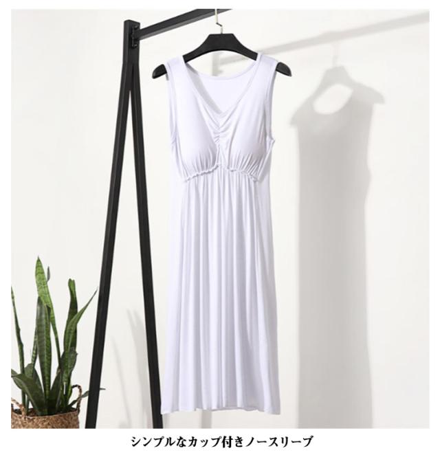 柔らかい カップ付き レディース ロング丈 キャミワンピ ワンピース 透け防止 キャミ ノースリーブ キャミワンピ キャミソールワンピース シンプル ルームウェア ブラカップ付きインナー ひんやり ロング キャミワンピ 無地 薄手 シンプル ルームウエア 透けない