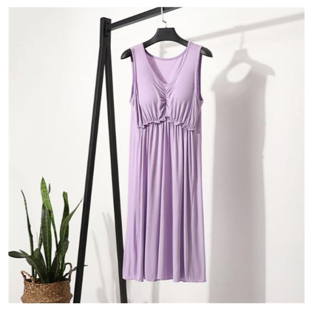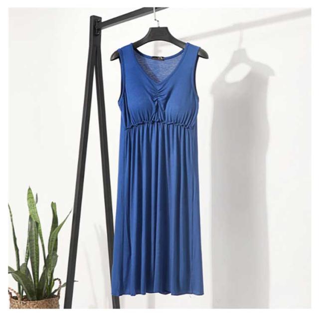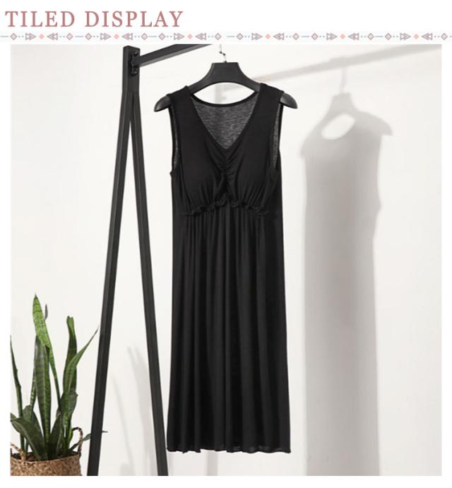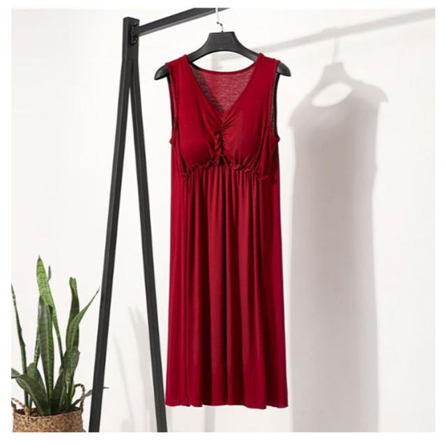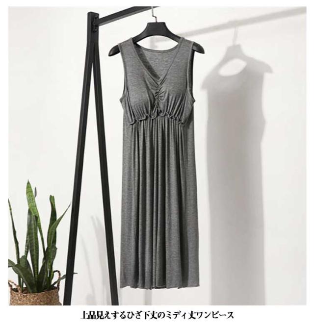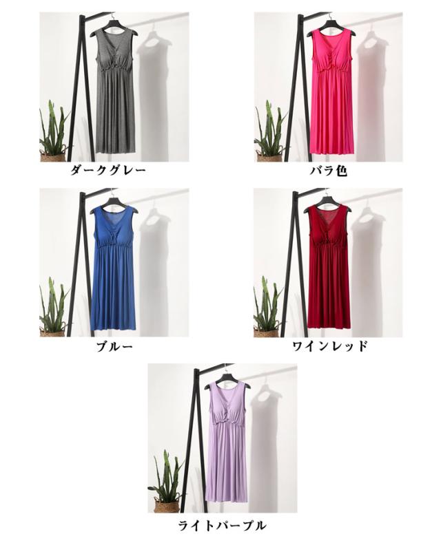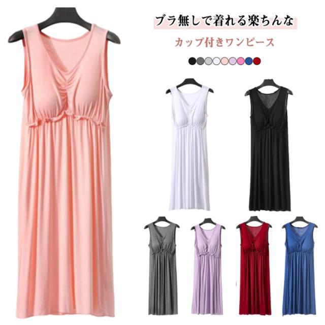| ブラ無しで着れる楽ちんなカップ付きワンピース シンプルなカップ付きノースリーブ 心地よい肌触りの上質なインナーワンピース。 一年を通してサラッと爽やかに、快適にお過ごし頂けます 上品見えするひざ下丈のミディ丈ワンピース 部屋着としても肌着としてもお使いいただけます | |