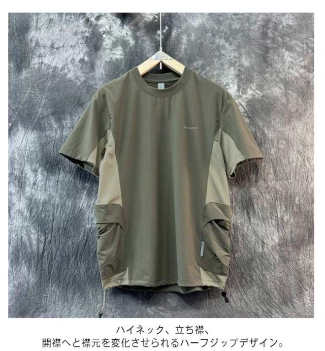 メンズ ハーフジップシャツ 普段着 ドライ 半袖ハーフジップ スポーツウェア ハイネックtシャツ 無地 ハイネックtシャツ トップス ゴルフウェア ポロシャツ ハイネックシャツ 涼しい スポーツウェア 作業着 夏用 ハイネックtシャツ tシャツ