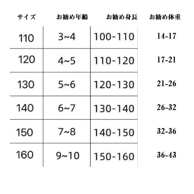 | サイズ | 110cm 120cm 130cm 140cm 150cm 160cm |