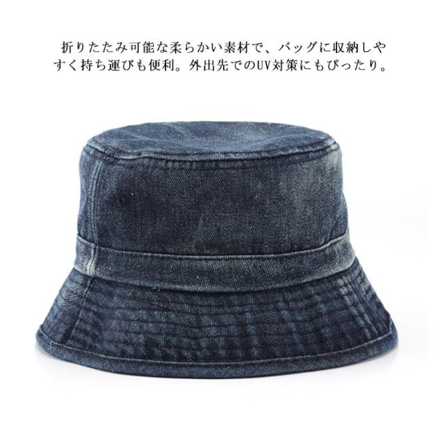 デニムハット バケットハット レディース 帽子 デニムバケットハット 頭周り約56cm UVカット帽子 カジュアル 紫外線対策 春夏秋冬 水洗い ストリート系 旅行用 折りたたみ 日焼け防止 おしゃれ 小顔効果 シンプル アウトドア