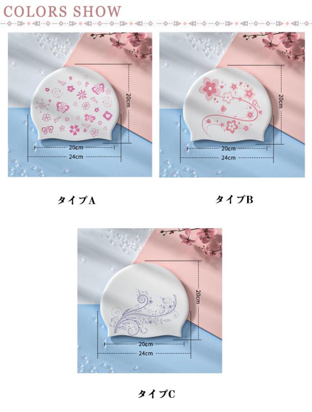 かわいい レディース 水着用 大人 スイムキャップ シリコン 水泳 帽子 大きいサイズ おしゃれ 水泳帽 キャップ 大人 ロングヘア 花柄 上品 2枚セット 2枚セット スイムアクセサリー フィットネス水着 キャップ 水泳用帽子
