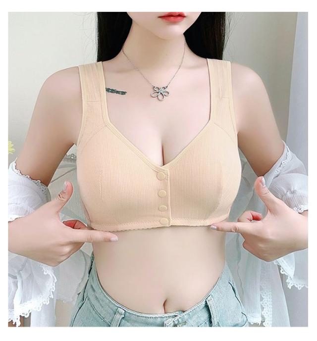 | 前開きボタンブラジャー新登場! フロントスナップボタンで着脱ラクチンです。 寝ていても背中にホックが当たって痛くなることもありません。 ノンワイヤードブラ、快適で柔らかく、タイトではない、自然にリラックスさせます。 自宅でも、職場でも、移動中でも、寝るときにも着用できます。 | |