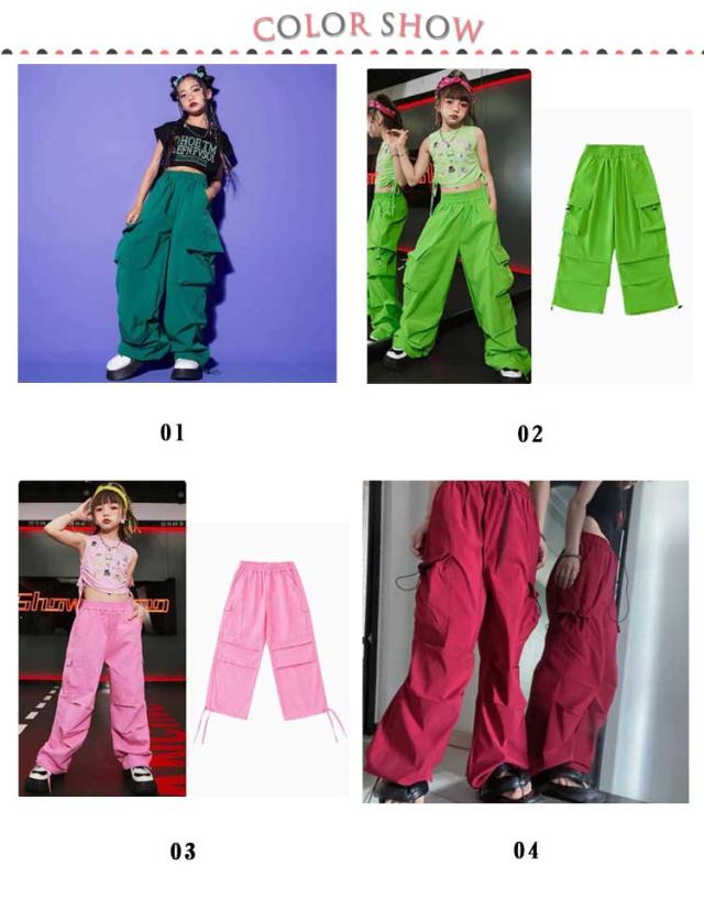カーゴパンツ カラフル ダンス キッズ ダンス ジュニア 韓国 レディース ズボン ヒップホップ 衣装 パンツ ダンス かっこいい ダンス衣装 練習着 レッスン着 発表会 男の子 女の子 ガールズ