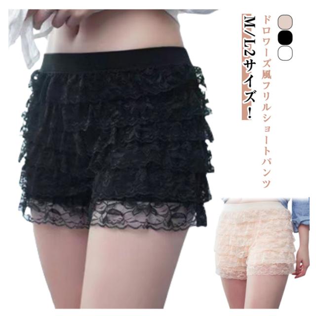 | ドロワーズ風フリルショートパンツ M/L2サイズ! キッズ、ジュニアも、レディースも着用可能 柔らかいフリル レースで伸縮性抜群です。 | |