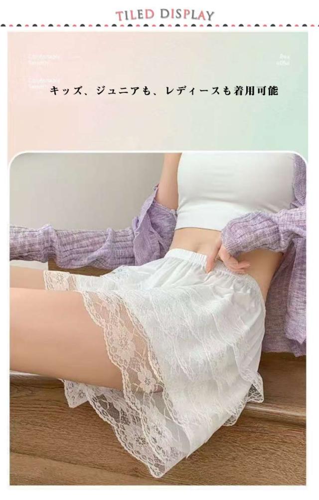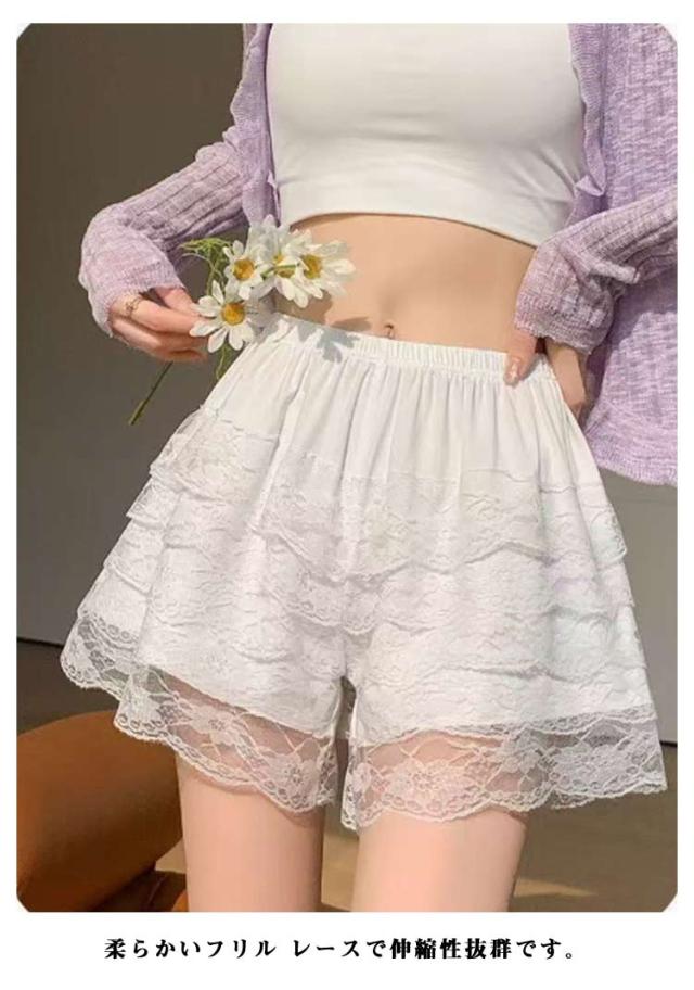 | ドロワーズ風フリルショートパンツ M/L2サイズ! キッズ、ジュニアも、レディースも着用可能 柔らかいフリル レースで伸縮性抜群です。 | |