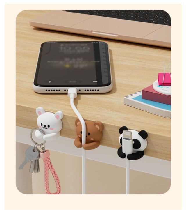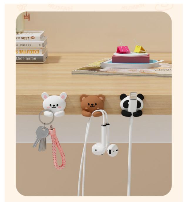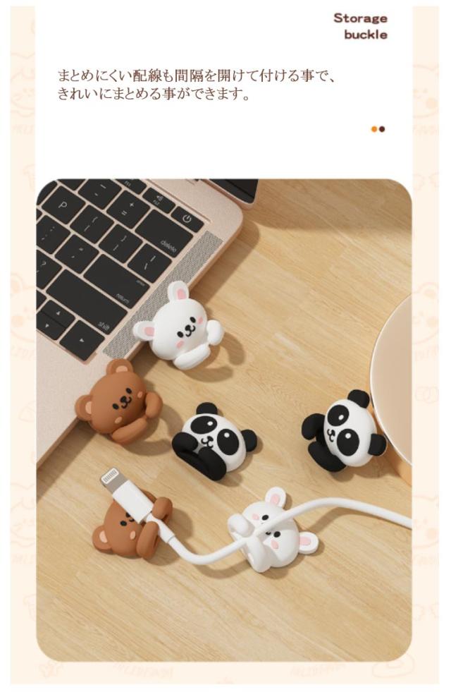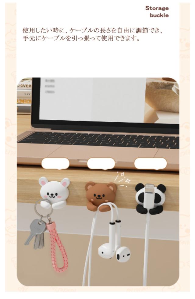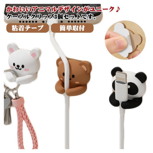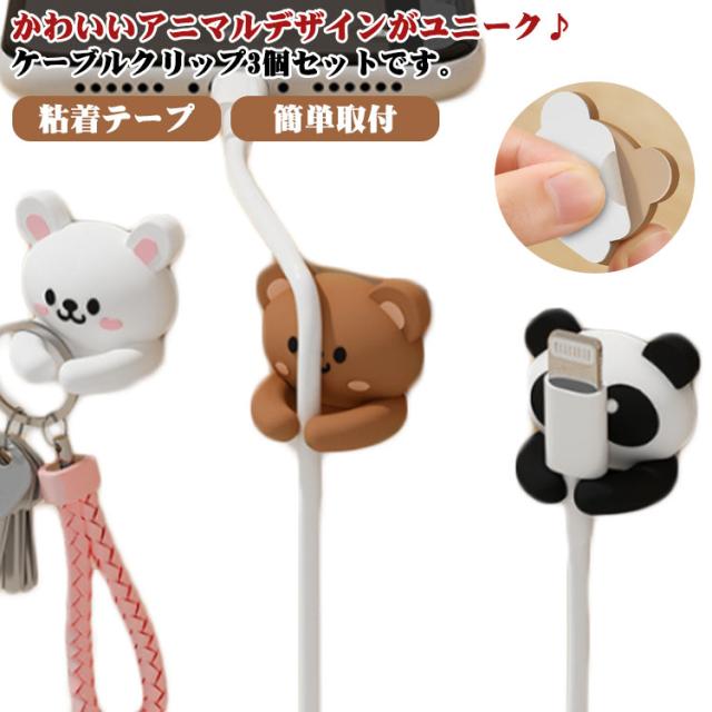 かわいいケーブルクリップ 3点セット ウサギ くま パンダ アニマルデザイン ケーブルホルダー コードフック 粘着テープ 配線整理 穴あけ不要 簡単取付 充電コード イヤホン 固定 デスク周り パソコン周り コードフック