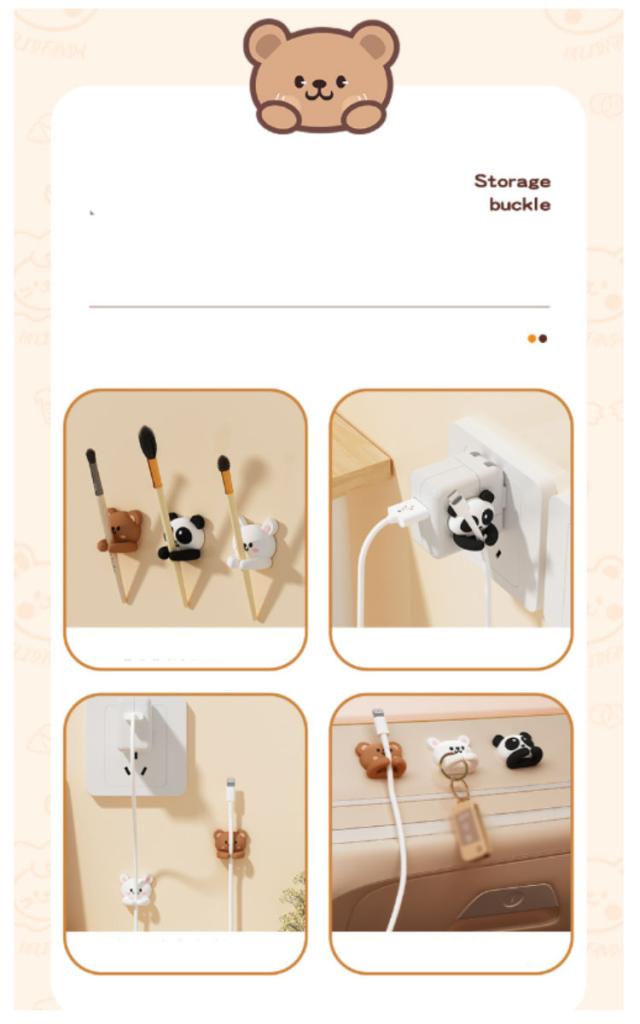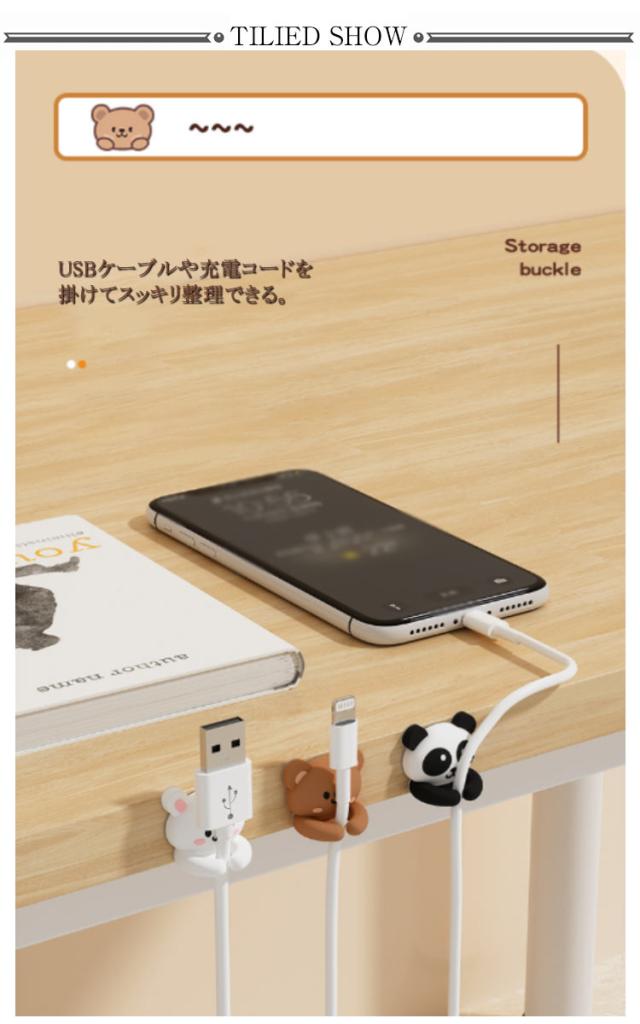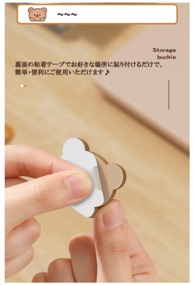 | かわいいアニマルデザインがユニーク♪ケーブルクリップ3個セットです。 USBケーブルや充電コードを掛けてスッキリ整理できる。 使用したい時に、ケーブルの長さを自由に調節でき、手元にケーブルを引っ張って使用できます。 裏面の粘着テープでお好きな場所に貼り付けるだけで、簡単・便利にご使用いただけます♪ まとめにくい配線も間隔を開けて付ける事で、きれいにまとめる事ができます。 | |